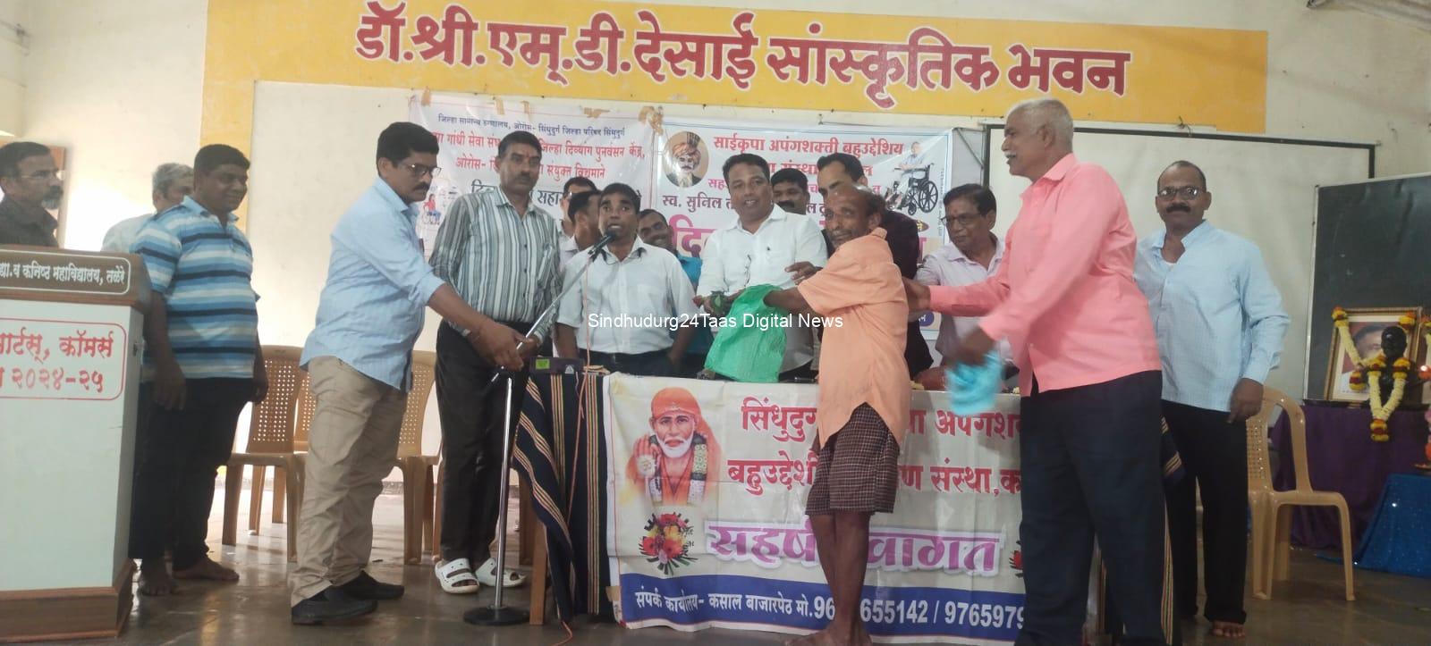 यावेळी उपस्थितांना विविध शासकीय योजनांची माहिती देण्यात येऊन काही साहित्य मोफत वाटप करण्यात आले. बालकृष्ण पांचाळ, दशरथ नकाशे, चंद्रकांत घाडी यांना श्रावण यंत्र, दिलीप कल्याणकर यांना पांढरी काठी मोफत देण्यात आली. यावेळी अविनाश मांजरेकर, दीपक कापसे यांनी मनोगत व्यक्त केले. यावेळी संस्थेचे सुनील तांबे, विशाखा कासले, प्रसन्ना दळवी आदी उपस्थित होते. या कार्यक्रमाचे प्रास्ताविक व आभार मिनेश तळेकर, अहवाल वाचन विशाखा कासले यांनी केले.